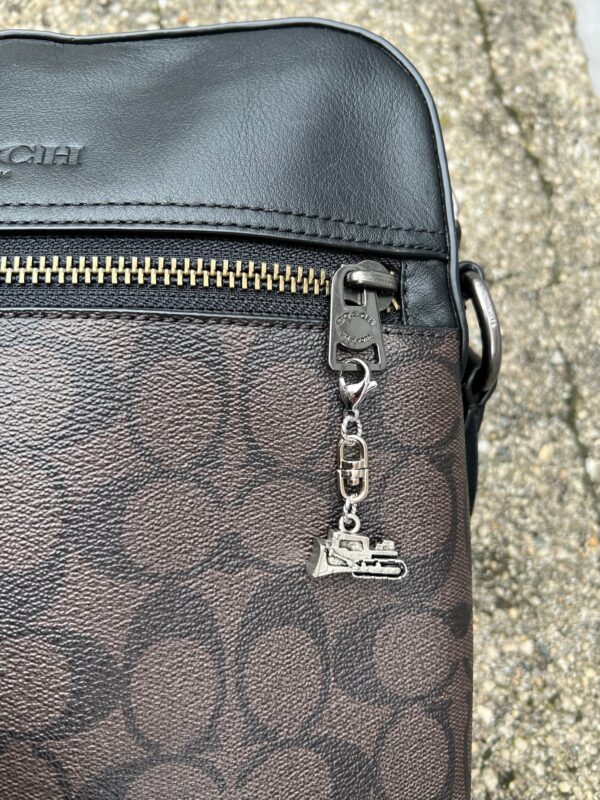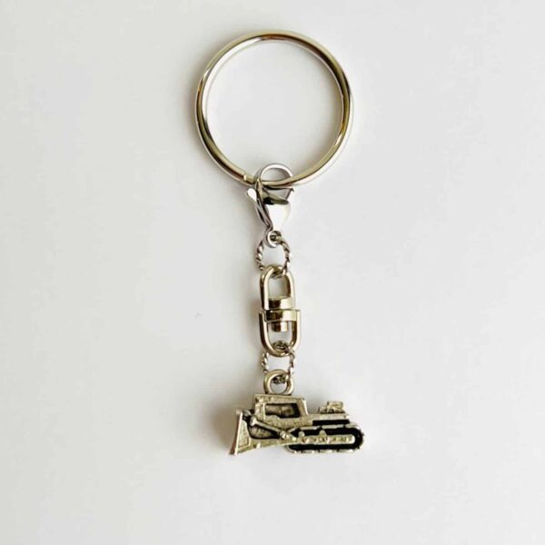 The Bulldozer Key Ring has a unique industrial swivel with a lobster claw, making it detachable from the key ring, to be worn as a zipper pull on a backpack, handbag or so cool on a Hoodie Zipper. 1″ long, 1/2″ height, 1/4″ wide, dangles from the Key Ring 1″ -3/4 long.