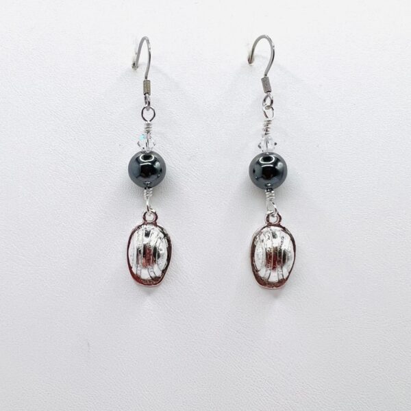 Achieve a polished “urban edgy look” with this pair of Hypoallergenic Stainless Steel Earwires, dangling 1.25 inches, with a 4mm Swarovski Crystal as an accent, sitting atop the Hematite Bead.